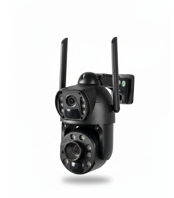 • عدستان: عدسة واسعة للمشهد العام + عدسة PTZ بزوم بصري 36X لمراقبة التفاصيل من بعيد بلا ما تخرّج من الدار.
